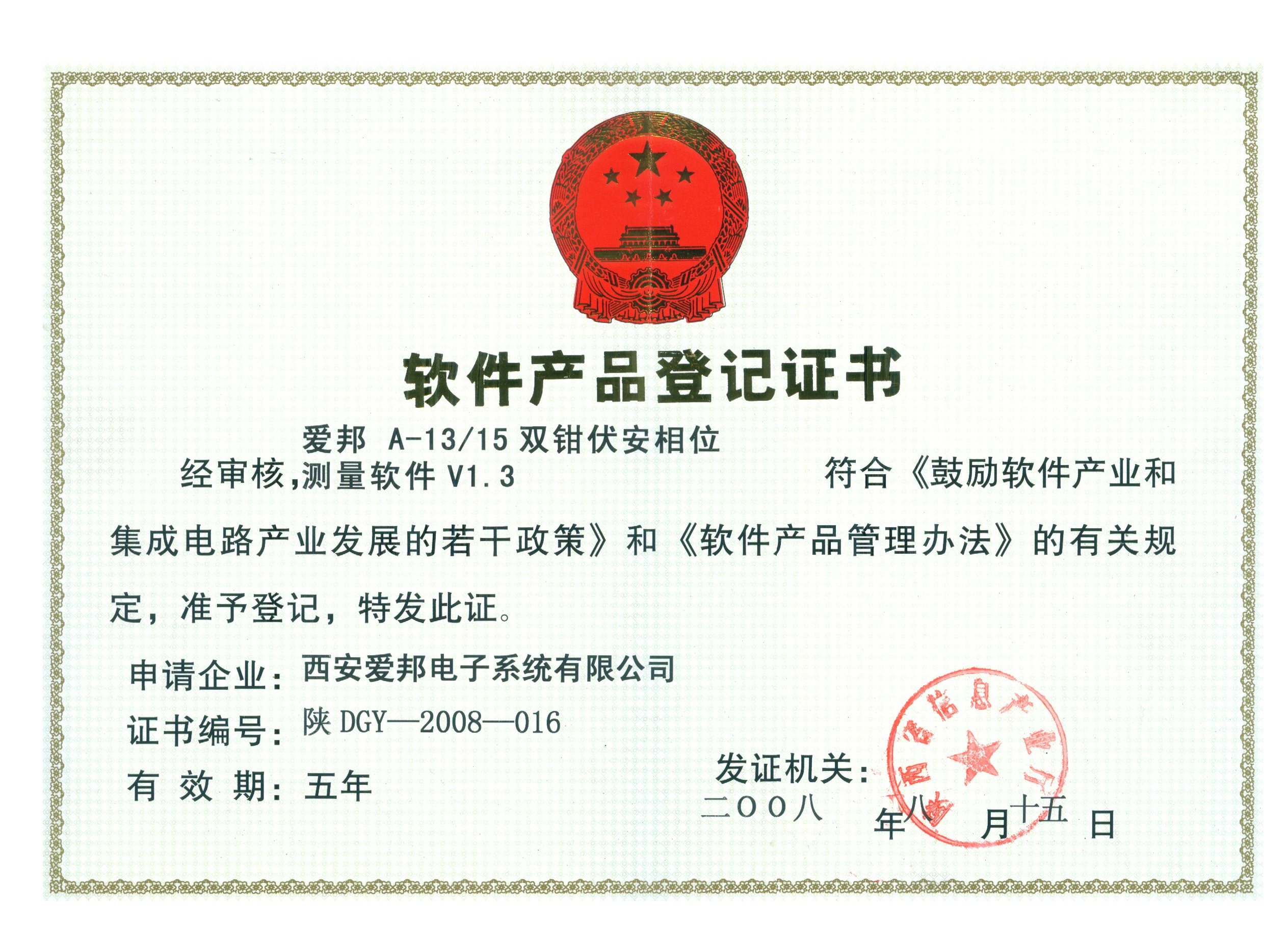 • 軟件產品登記證書